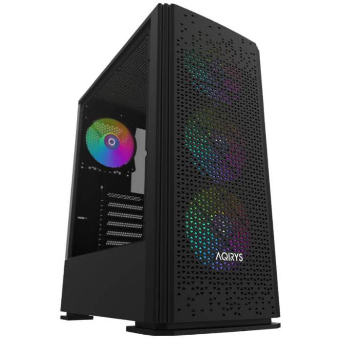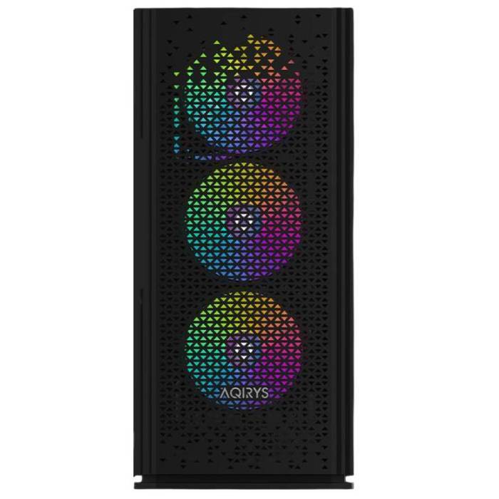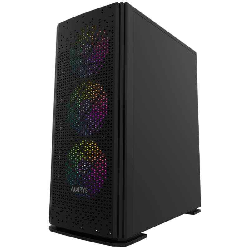 Boitier PC Gamer AQIRYS GACRUX - Format du boitier: Moyen Tour - Format de carte mère: Mini-ITX, Micro-ATX, ATX - Format Alimentation: ATX, longueur maximale de 175 mm (installation par le bas) - Prise en charge VGA max: 310 mm - Hauteur max. ventilateur CPU: 160 mm - Ventilateurs installés Avant: 3x 120 mm (RGB, pas de PWM) , Arrière: 1x 120 mm (RGB, pas de PWM) - Éclairage: RVB - Emplacements d'extension: 7 - Baies de lecteur: 2x 3.5", 2x 2.5" - Verre trempé, filtre à poussière magnétique amovible, compartiment pour alimentation, passages pour câbles - Connecteurs: 1x USB 3.0, 2x USB 2.0, audio HD - Dimensions: 449 x 357 x 205 mm - Couleur: Noir - Garantie: 1 an