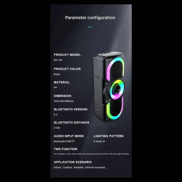 SPEAKER BLUETOOTH BS-104 AVEC MICRO SANS FILS