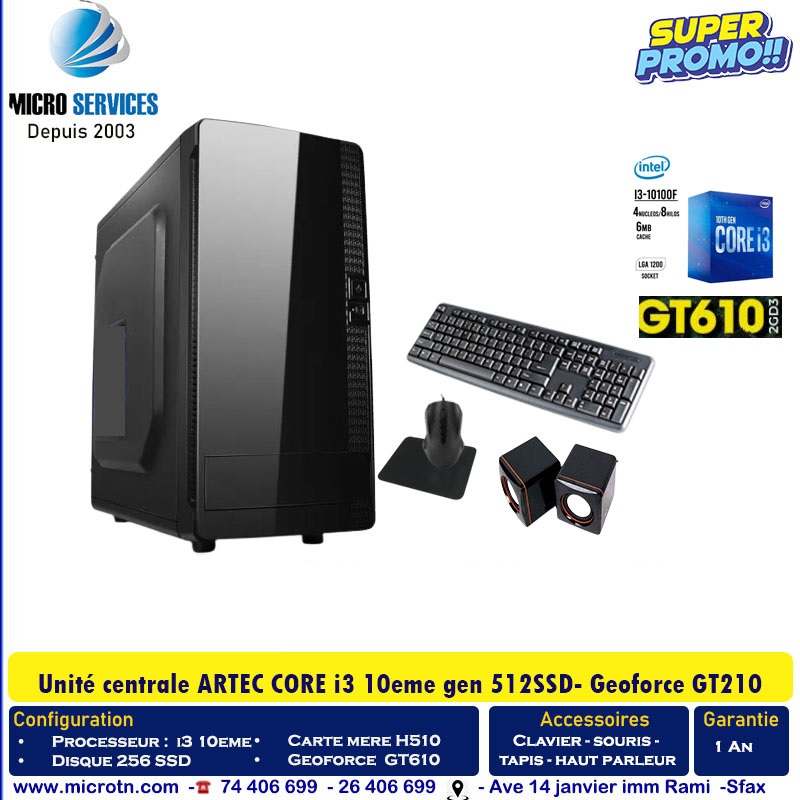 4. Unité centrale Artek core i3 10eme gen -256 ssd 4GO RAM Grapgique Geoforce GT210