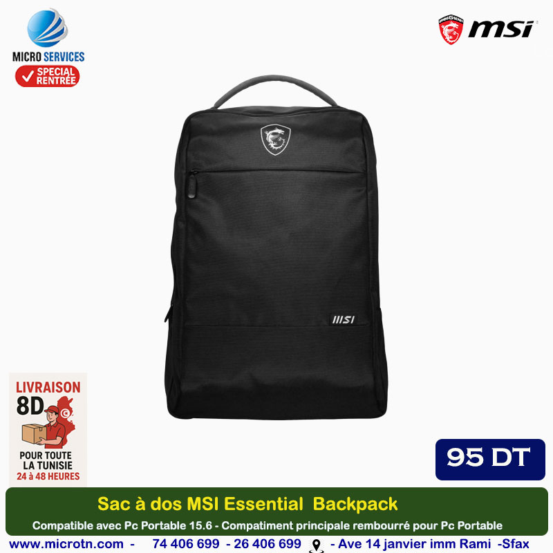 Sac à dos MSI Essential Backpack - Compatible avec Pc Portable 16