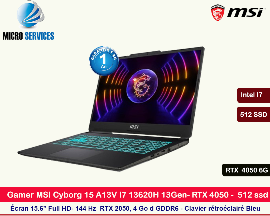 PC Portable Gamer MSI Cyborg 15 A13VE i7 13è Gén 16G RTX 4050