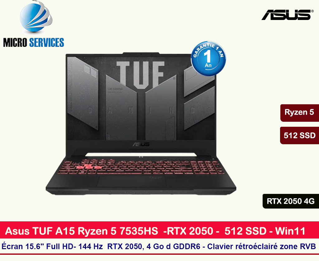 PC Portable ASUS TUF Gaming A15 FA506NF - Ryzen 5 7535HS - RTX 2050 4G- 16 Go DDR5 - Windows 11