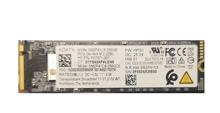 256GB NVMe PCIe M.2 2280 Gen4 x4 SSD PN: P07971-001 ADATA Laptop Notebook.