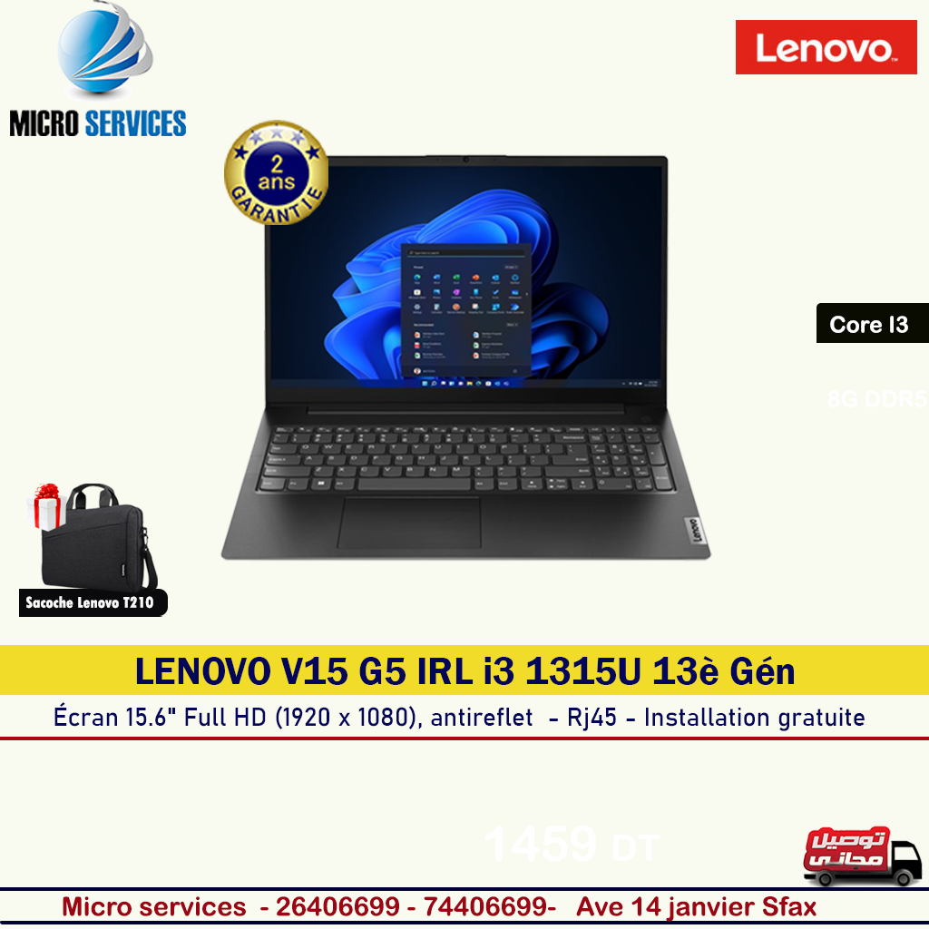 PC Portable LENOVO V15 G5 IRL i3 13è Gén 8G 256Go SSD - Noir