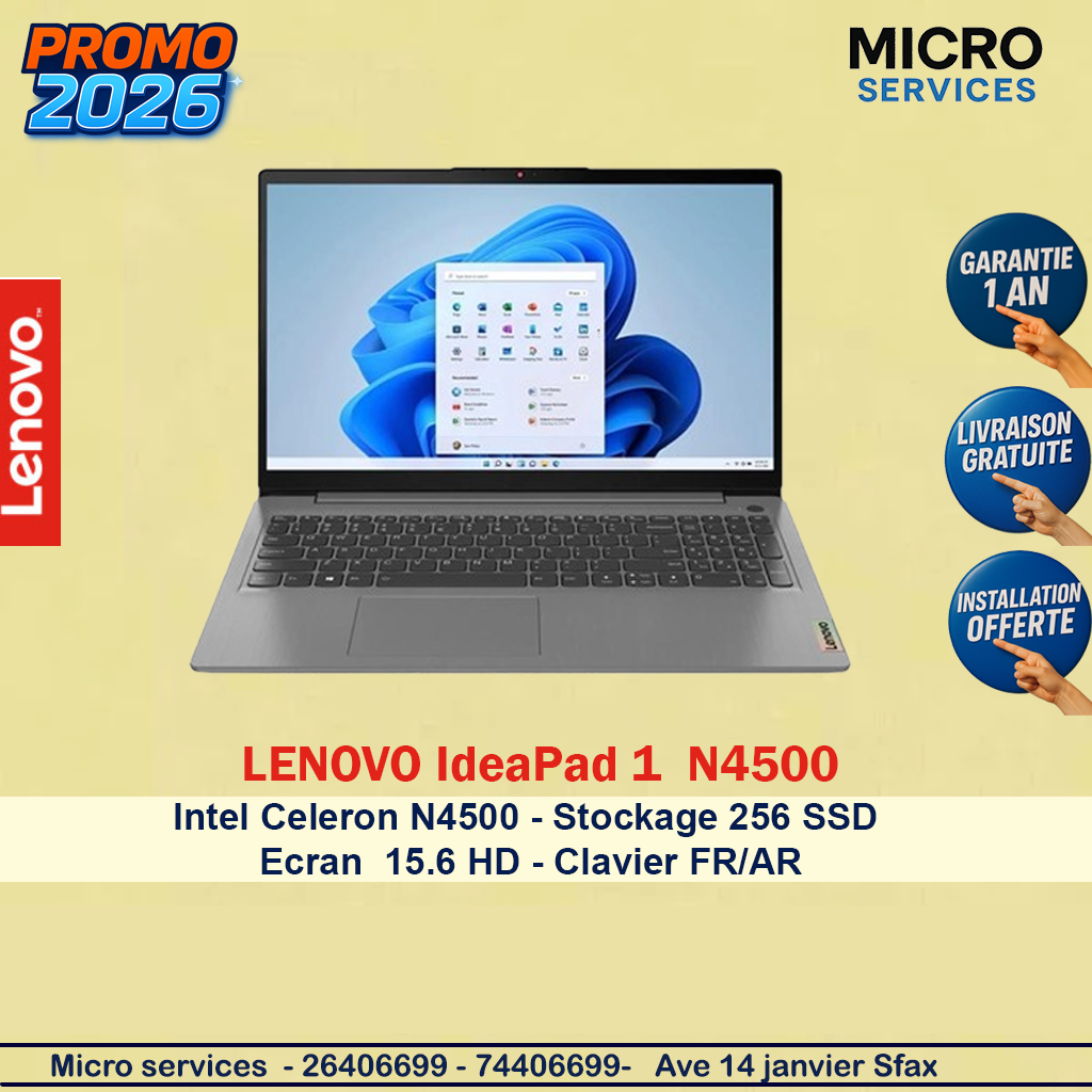 PC Portable LENOVO IdeaPad 1 Intel Celeron N4500 8Go 256Go SSD - Gris
