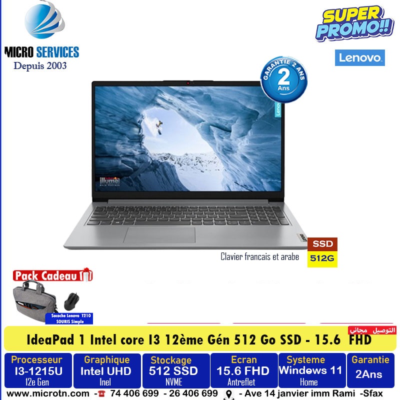 4. PC Portable LENOVO IdeaPad 1core i3 12ème Gén 12G 512Go SSD - Gris w11