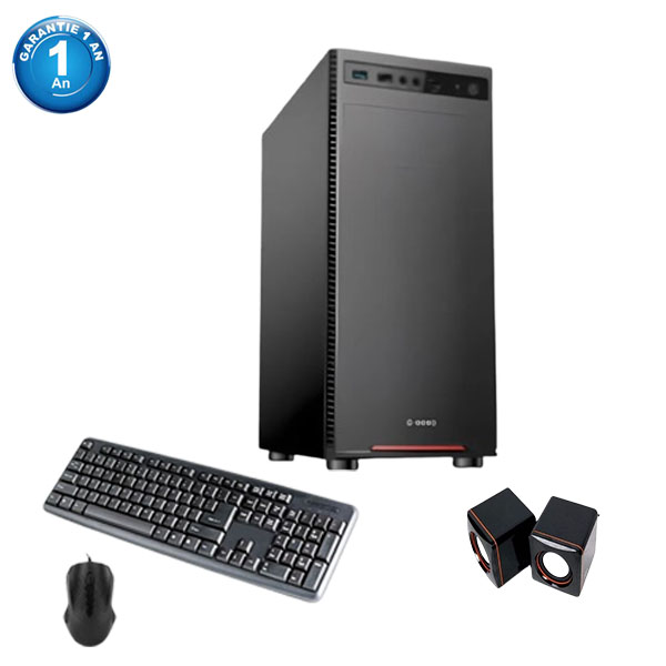 Unité cetrale avec processur I3 3EME GEN, disque 256ssd , carte mere h61, hdmi vga , avec accessoires clavier , souris , tapis et haut parleur , garantie 1 AN