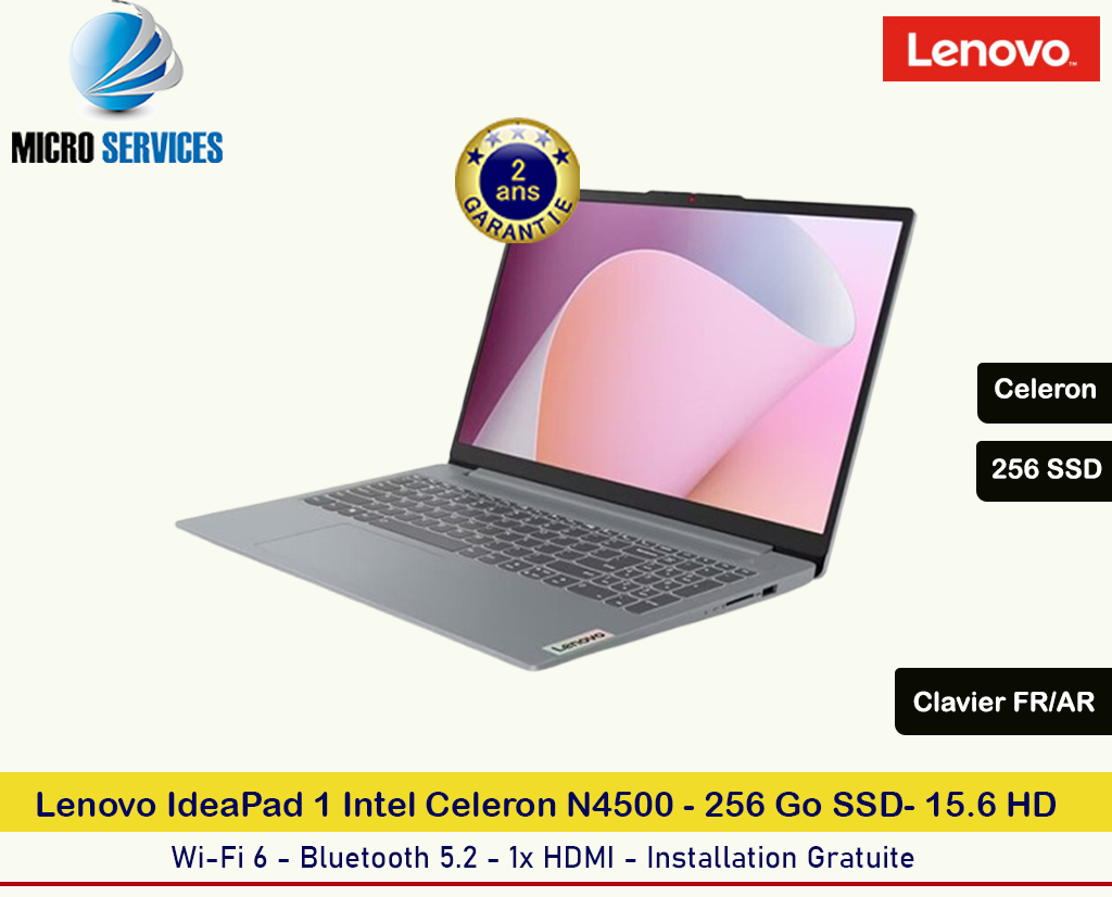 PC PORTABLE LENOVO IDEAPAD 1 CELERON N4500 - 16GO - 256 GO SSD – GRIS – GARANTIE 2 ANS