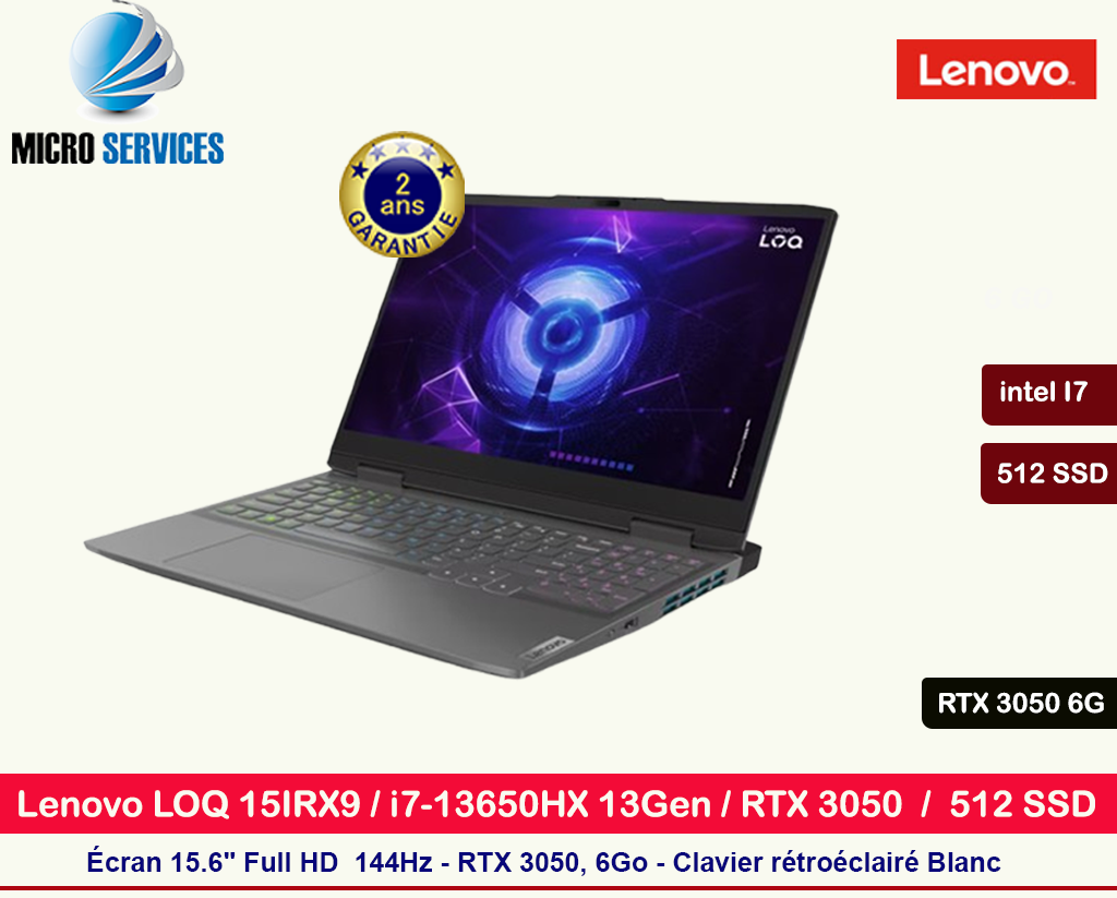 Pc Portable Gamer Lenovo LOQ 15IRX9 i7-13650HX -RTX 3050 6G- 32 Go - Gris